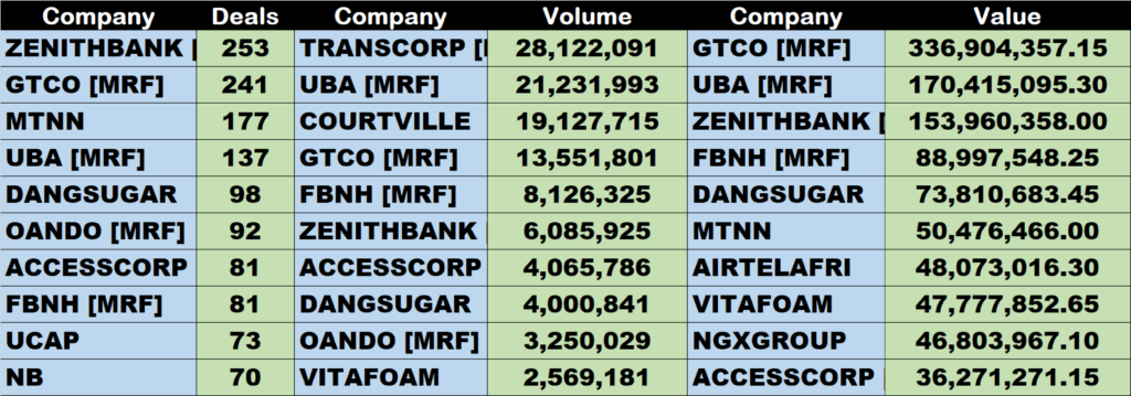 GTCO traded about 13.6 million units of its shares in 241 deals valued at N336.9 million.