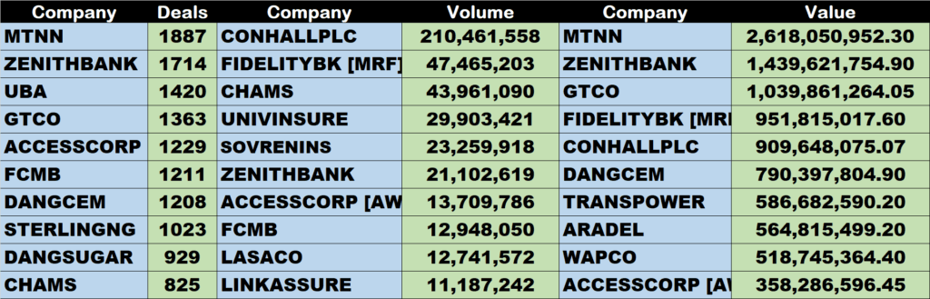 Wema Bank and Living Trust Insurance among other price decliners also shed their share prices by 4.51% and 3.85% respectively.