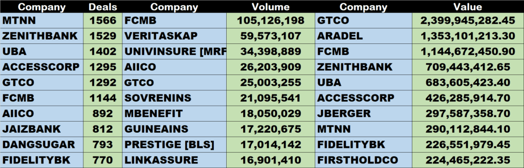 An aggregate of 591 million units of shares were traded in 33,342 deals, valued at N11.7 billion.