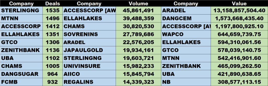 ACCESSCORP traded about 46 million units of its shares in 1412 deals, valued at about N1.2 billion.